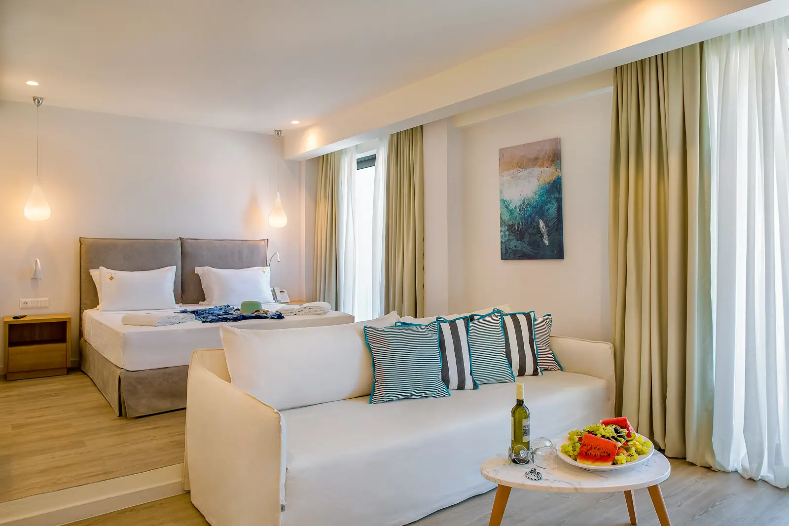 Samian Mare Hotel Suites & Spa is in volledig gerenoveerd en telt 75 kamers verdeeld over één gebouw met 3 verdiepingen.
