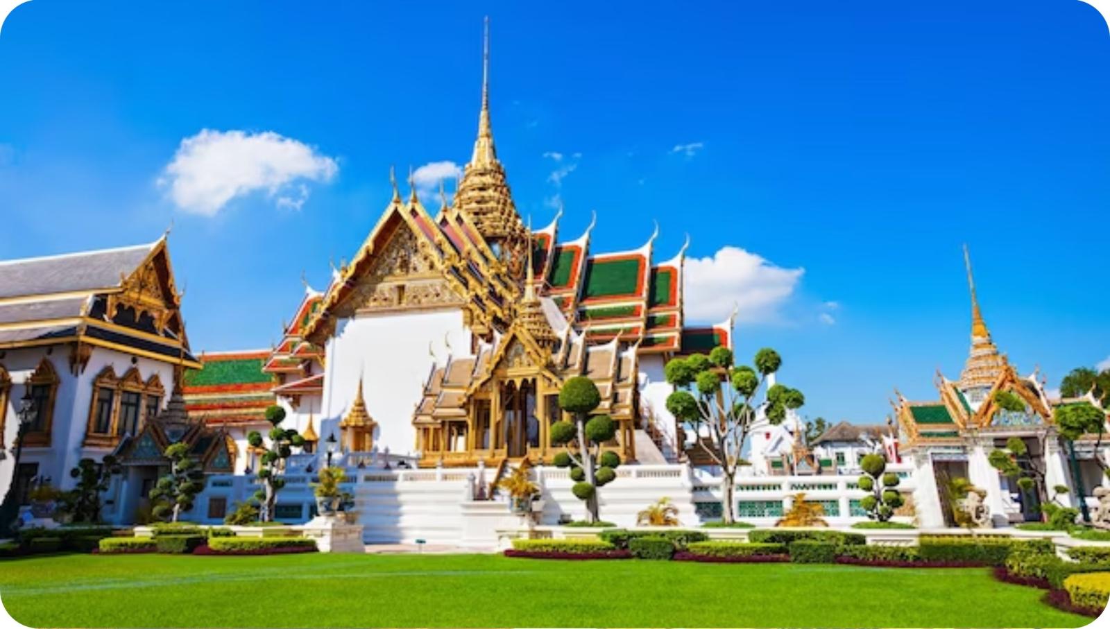Bezoekers worden verwelkomd door prachtige tempels zoals Wat Phra Kaew en Wat Arun, het imposante Koninklijk Paleis
