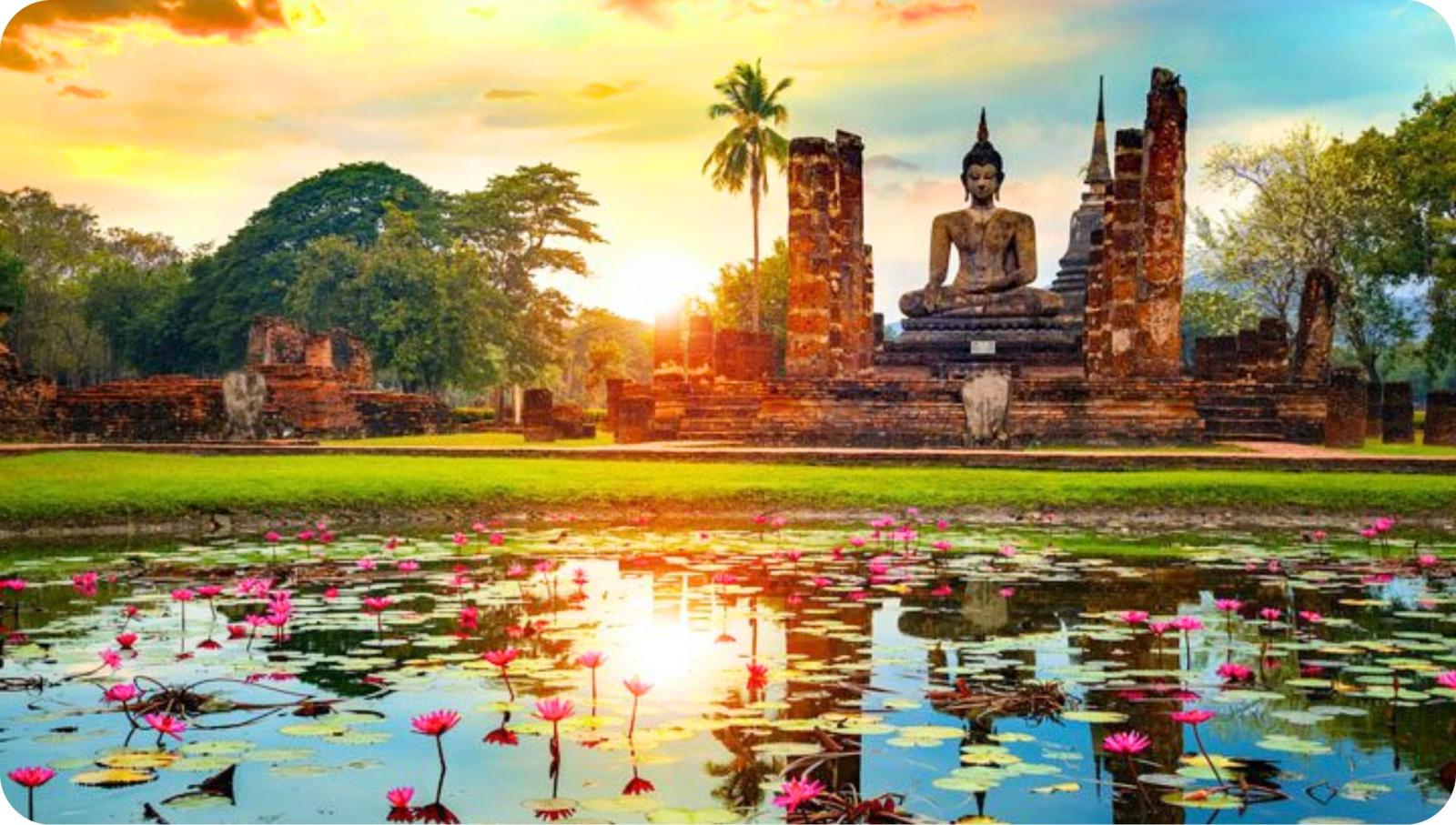 de oude glorie van Thailand ervaart, maar ook de stilte en eenvoud van het platteland eromheen.