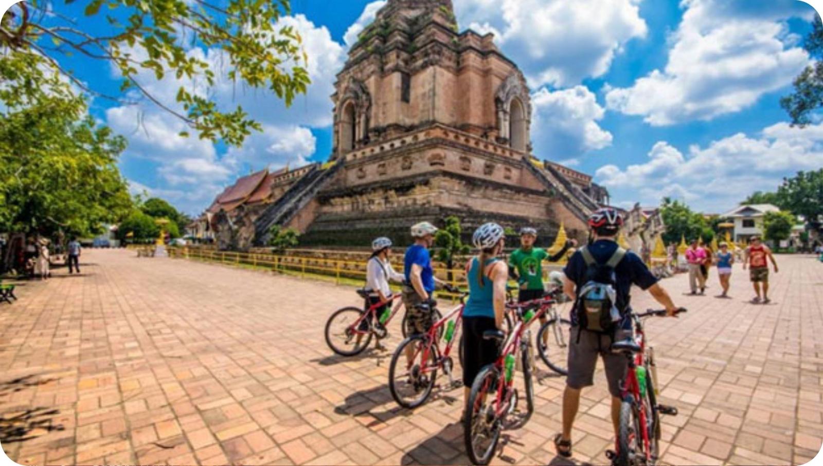 Optionele uitstappen in ‘De Roos van het Noorden’. FIETSTOCHT DOOR CHIANG MAI (met lichte lunch), een zeer aangename activiteit die u niet snel vergeet. Een interessante route over landelijke wegen die u laat kennis maken met allerlei aspecten van het noordelijke plattelandsleven (facultatief: 1.300 THB).