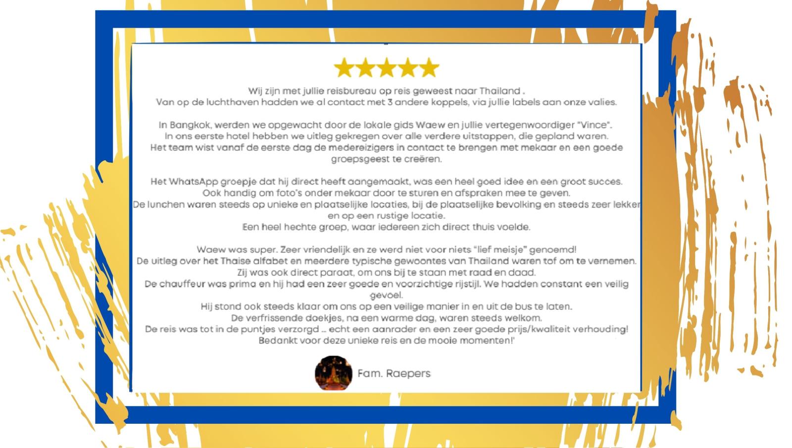 ° Wij sturen al 30 jaar >1900 klanten naar Thailand