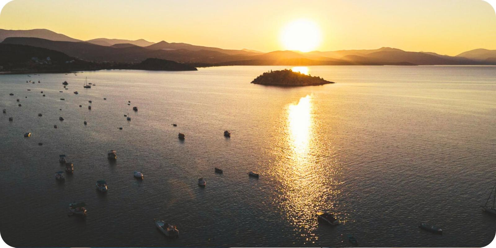 We vertrekken uit de haven van Tolo en varen naar het eiland Hydra, in de Egeïsche Zee.