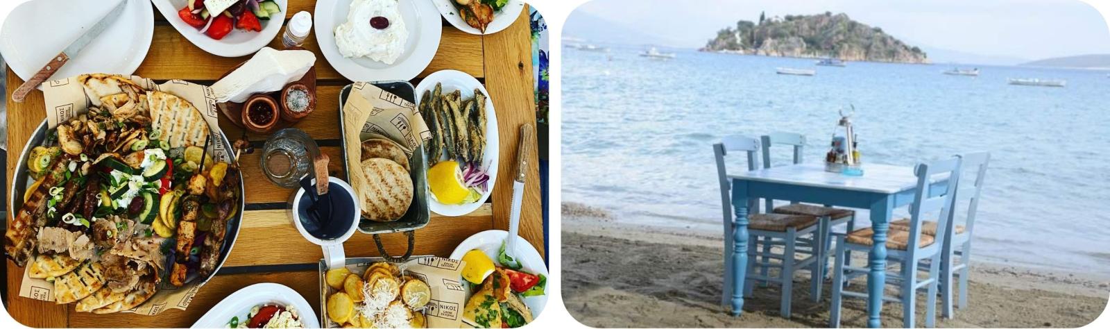 ( bijzonder fijn om 's middags een verse Griekse vis, vleesschotel of overheerlijke salade te eten . . . )