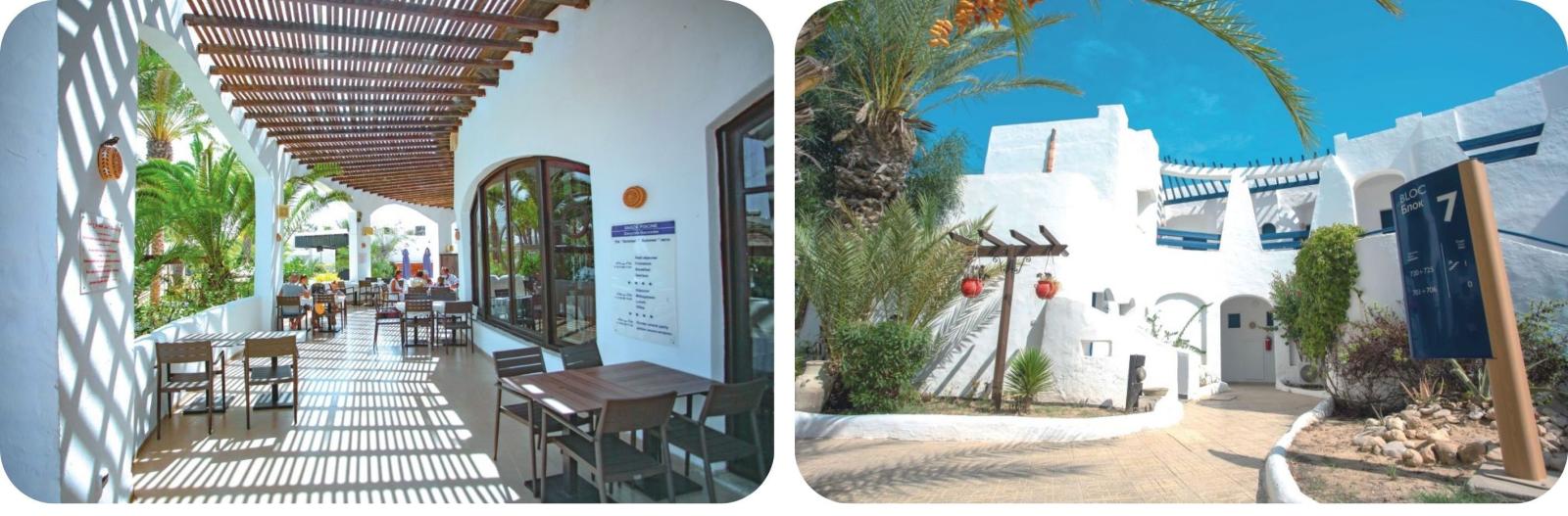 Het hotel ligt op ongeveer 25 km van de luchthaven, 15 minuten van Houmt Souk en 10 minuten van Midoun.