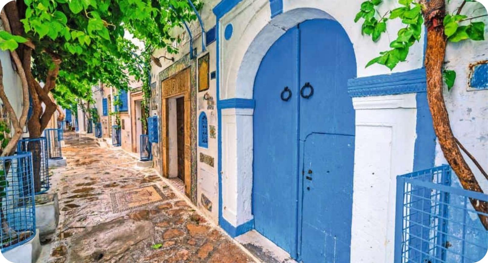 Dwaal door de smalle straatjes vol witte huisjes, ontdek kleurrijke souks waar je lokale handwerken,