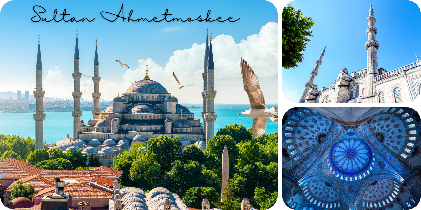 de adembenemende blauwe tegels die het interieur sieren. We zien de Hagia Sophia,