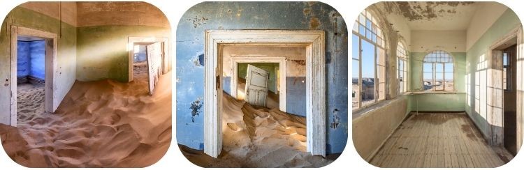 Na het ontbijt rijden we terug richting binnenland voor een begeleid bezoek aan Kolmanskop, een verlaten diamantstadje