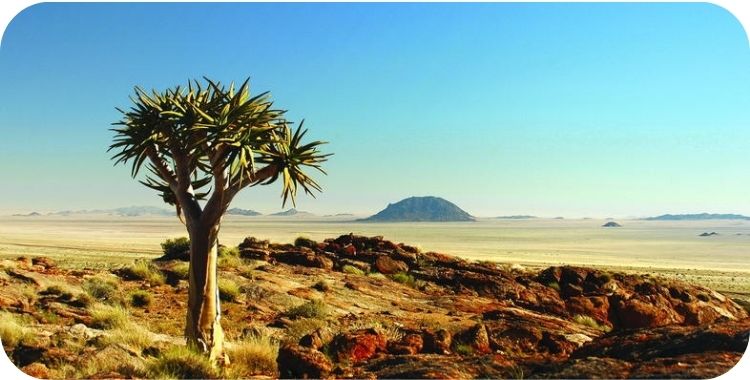 In het zuidelijke deel van Namibië bestaan de landschappen voornamelijk uit wijdopen vlaktes.