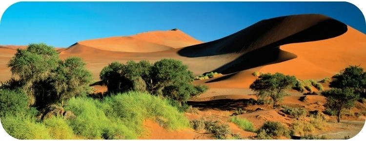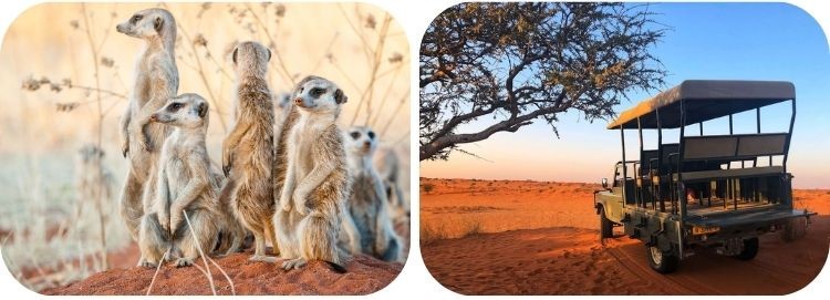 Van de Namib gaat het naar de Kalahari woestijn, die zich uitspreidt over delen van Namibië,