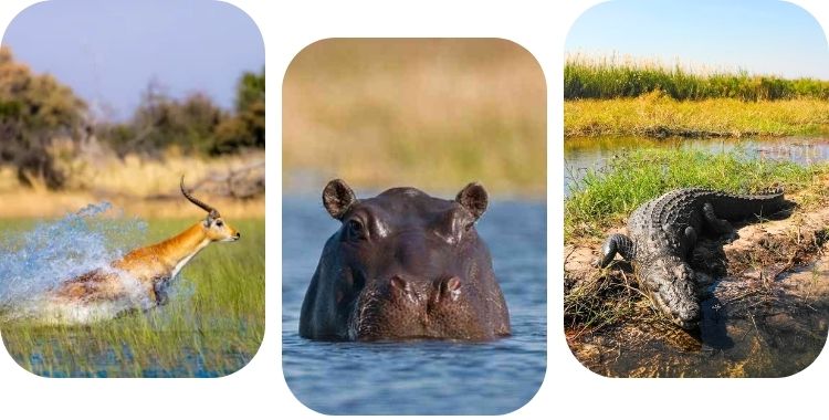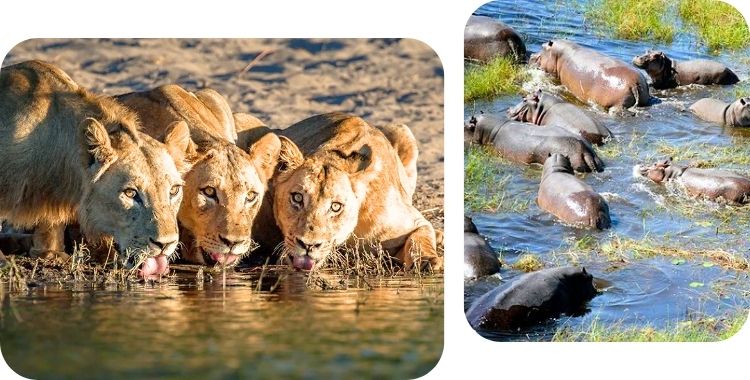 Met een beetje geluk ontmoeten we olifanten, nijlpaarden, antilopen, krokodillen,…