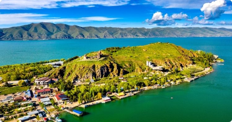 Het meer van Sevan is het grootste meer van de Kaukasus en biedt spectaculaire uitzichten.