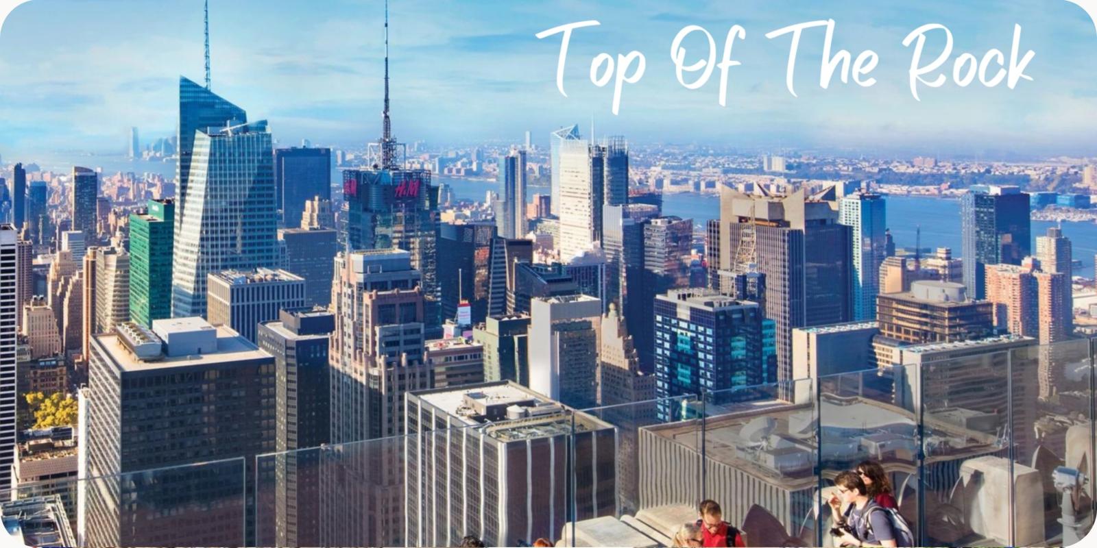 " Top Of The Rock " waar het panoramisch zicht over de skyline en Central Park u zal verbazen. (optie)