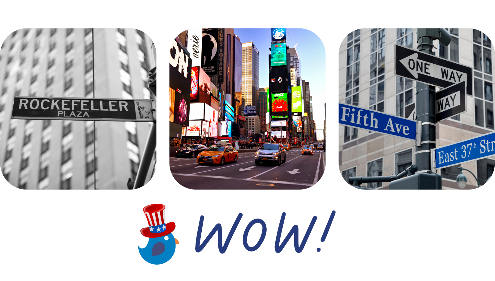 en ook Fifth Avenue, Times Square, Rockefeller Plaza en andere mythische plaatsen.