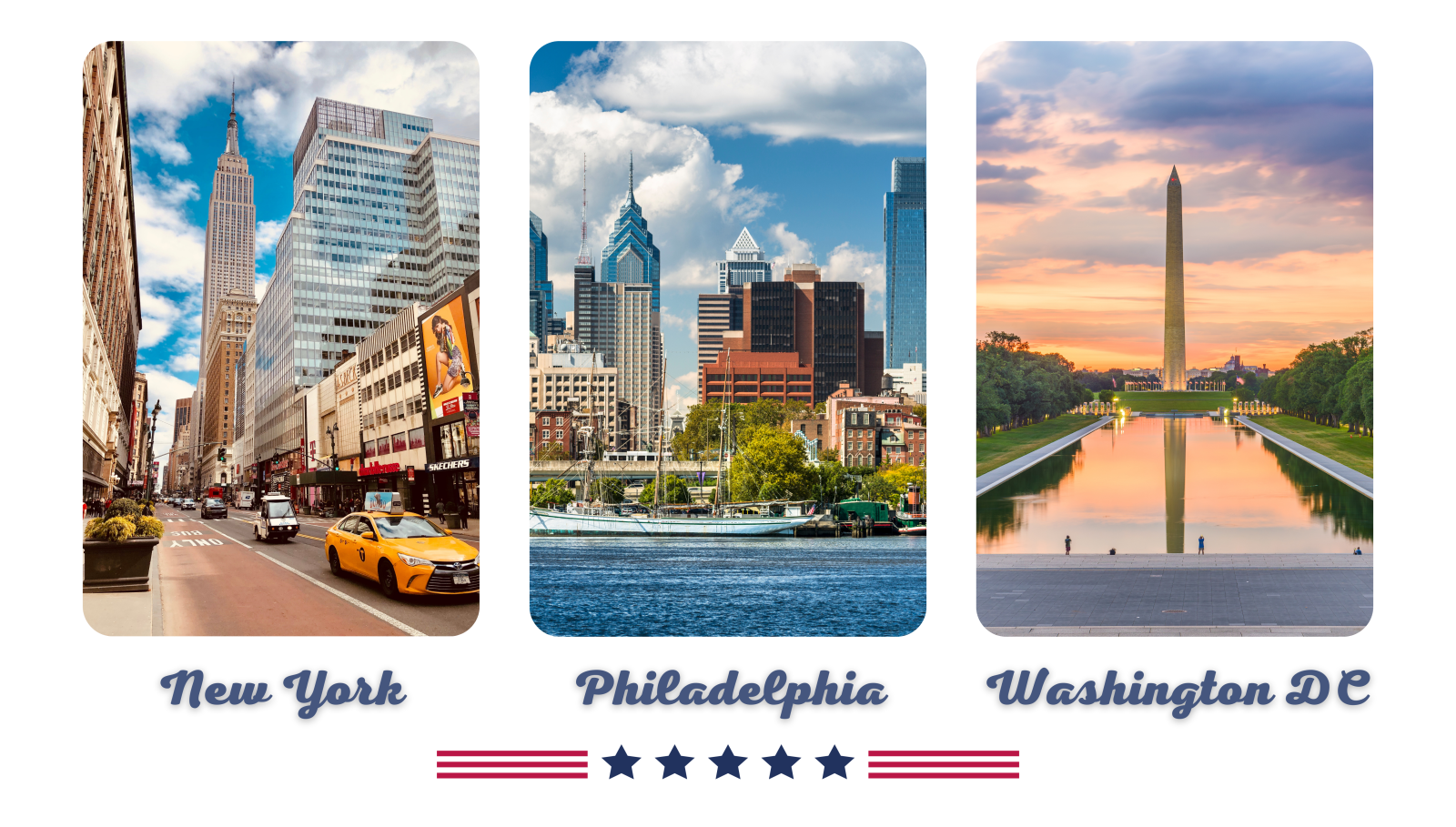 Alle belangrijke monumenten passeren de revue: Liberty Bell, Chinatown,