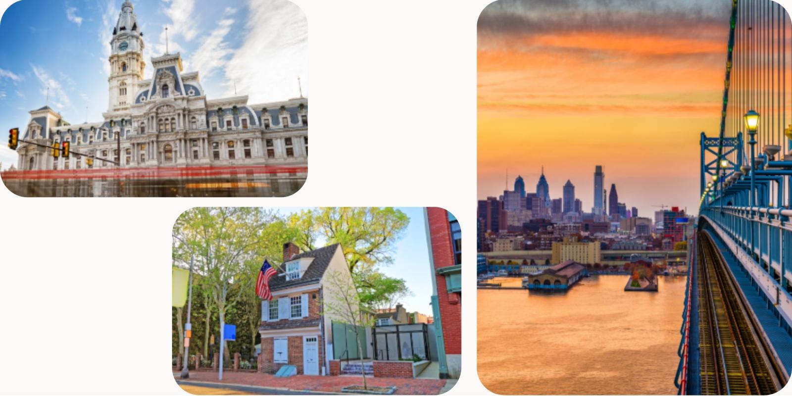 Town hall en het historische huis van Betsy Ross.