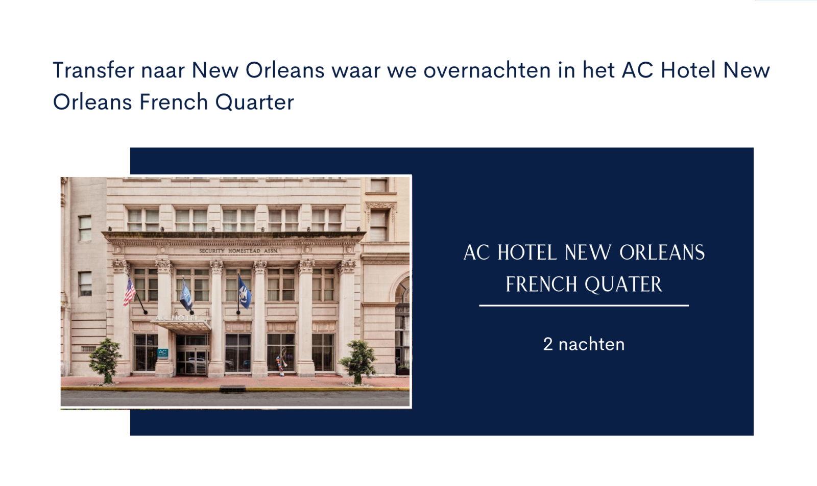 De voorgestelde hotels kunnen wijzigen in het geval dat het programma gewijzigd moet worden omwille van onvoorziene omstandigheden, zoals renovatiewerken of andere. Alternatief is steeds een gelijkwaardig hotel. De foto’s zijn enkel informatief.