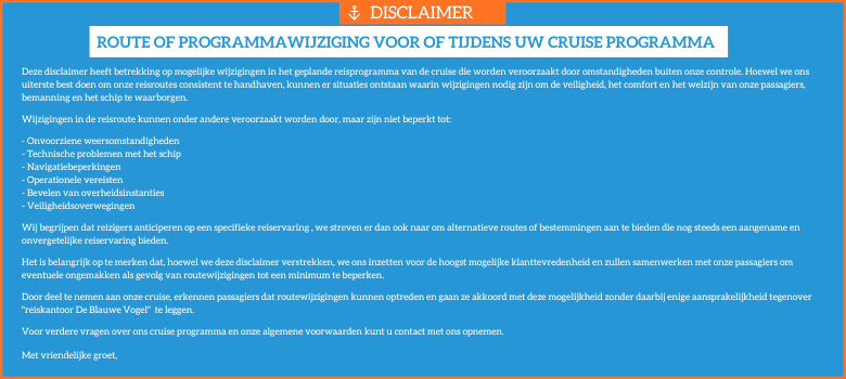 Wij hopen dat jullie genoten hebben van deze fantastische cruise en hopen jullie snel terug te mogenontmoeten op een volgend "De Blauwe Vogel" avontuur!
