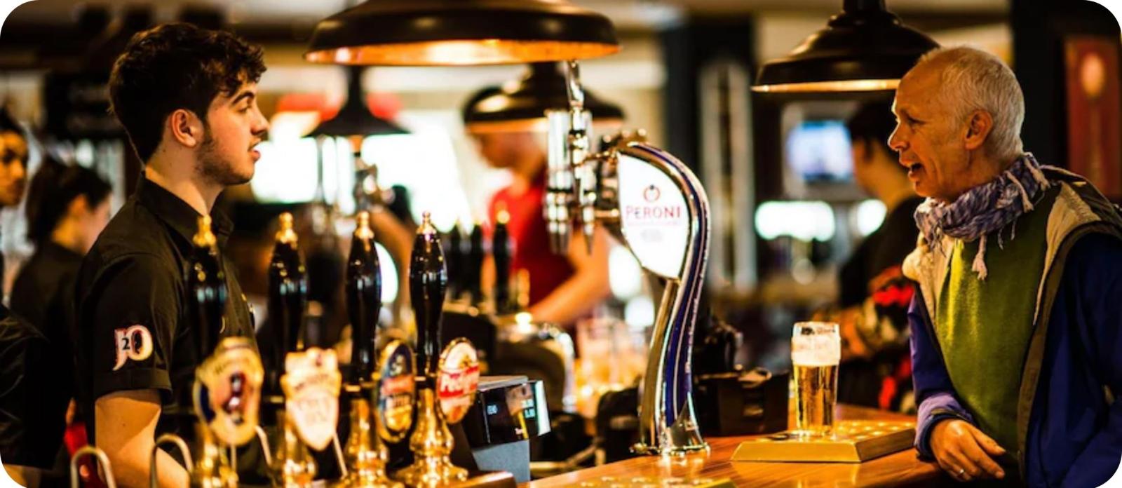 We genieten van een vrije lunch in een typische Welshe pub.