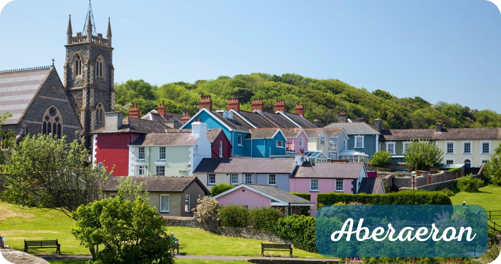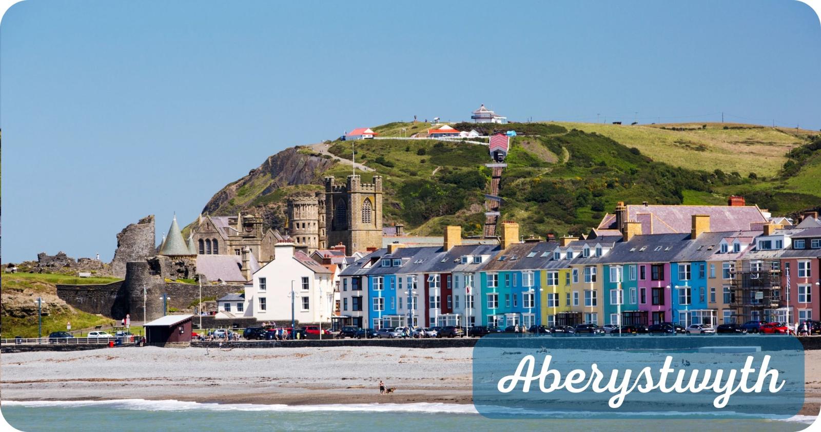 het lieflijke vissersdorpje Aberaeron met zijn uitnodigende pubs en het universiteitsstadje Aberystwyth waar we overnachten.