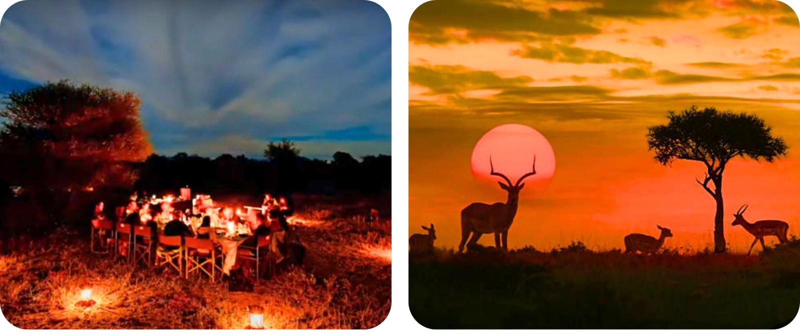 van de Afrikaanse wildernis te ontdekken terwijl de zon ondergaat en de nacht tot leven komt. Na een warme welkom