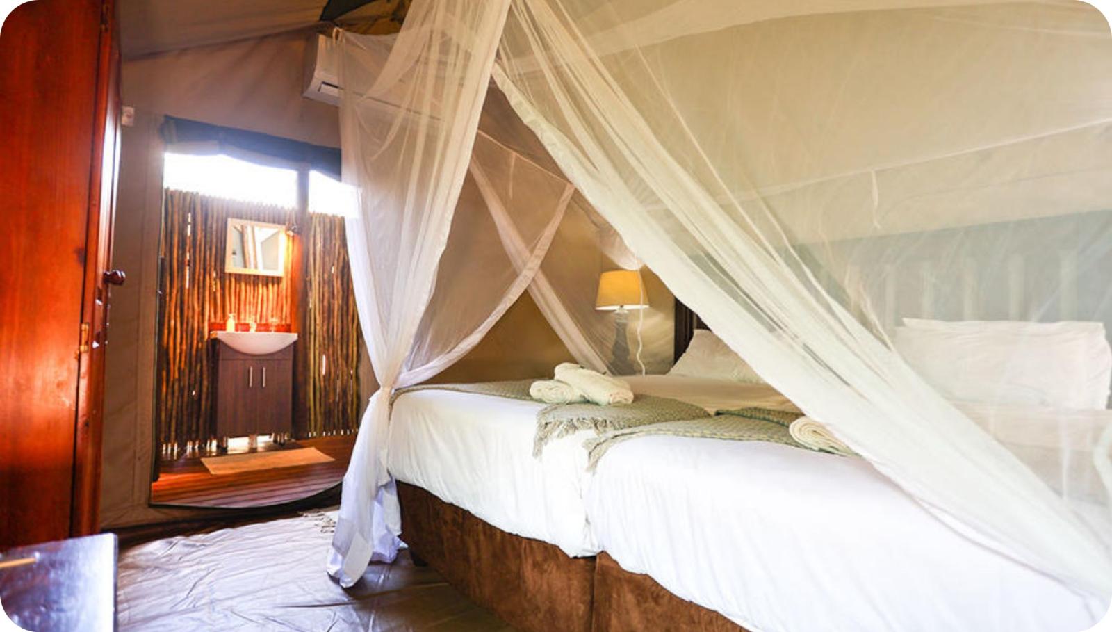 terwijl je geniet van de serene schoonheid van de Afrikaanse wildernis. Dus word wakker met de natuur en maak