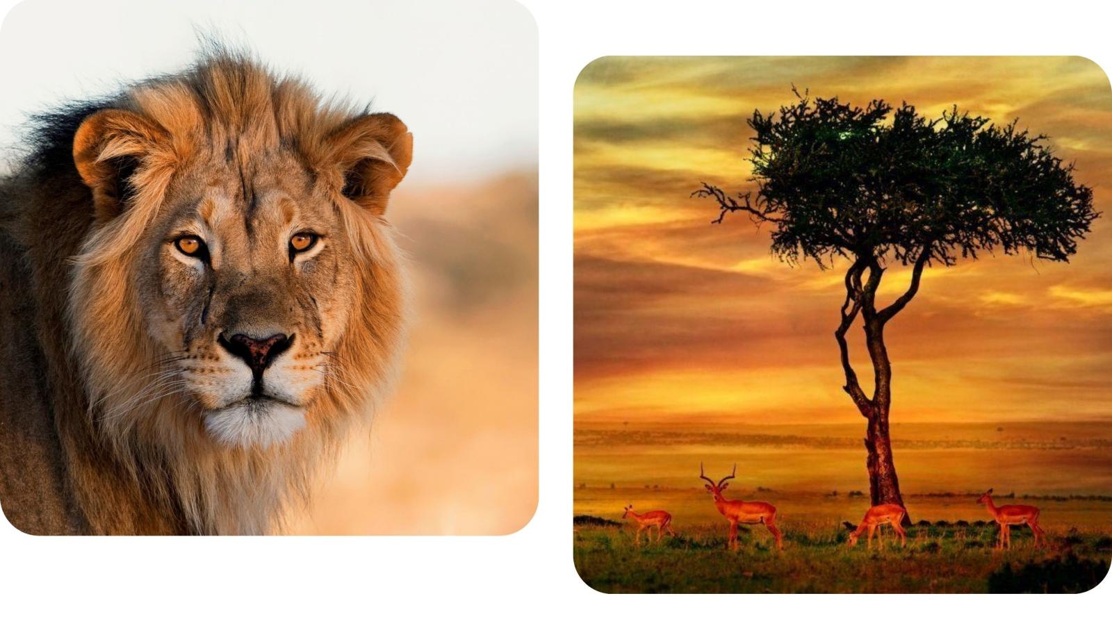 dieren van Afrika te zien. Van majestueuze leeuwen die zichzelf laten horen tot elegante giraffen