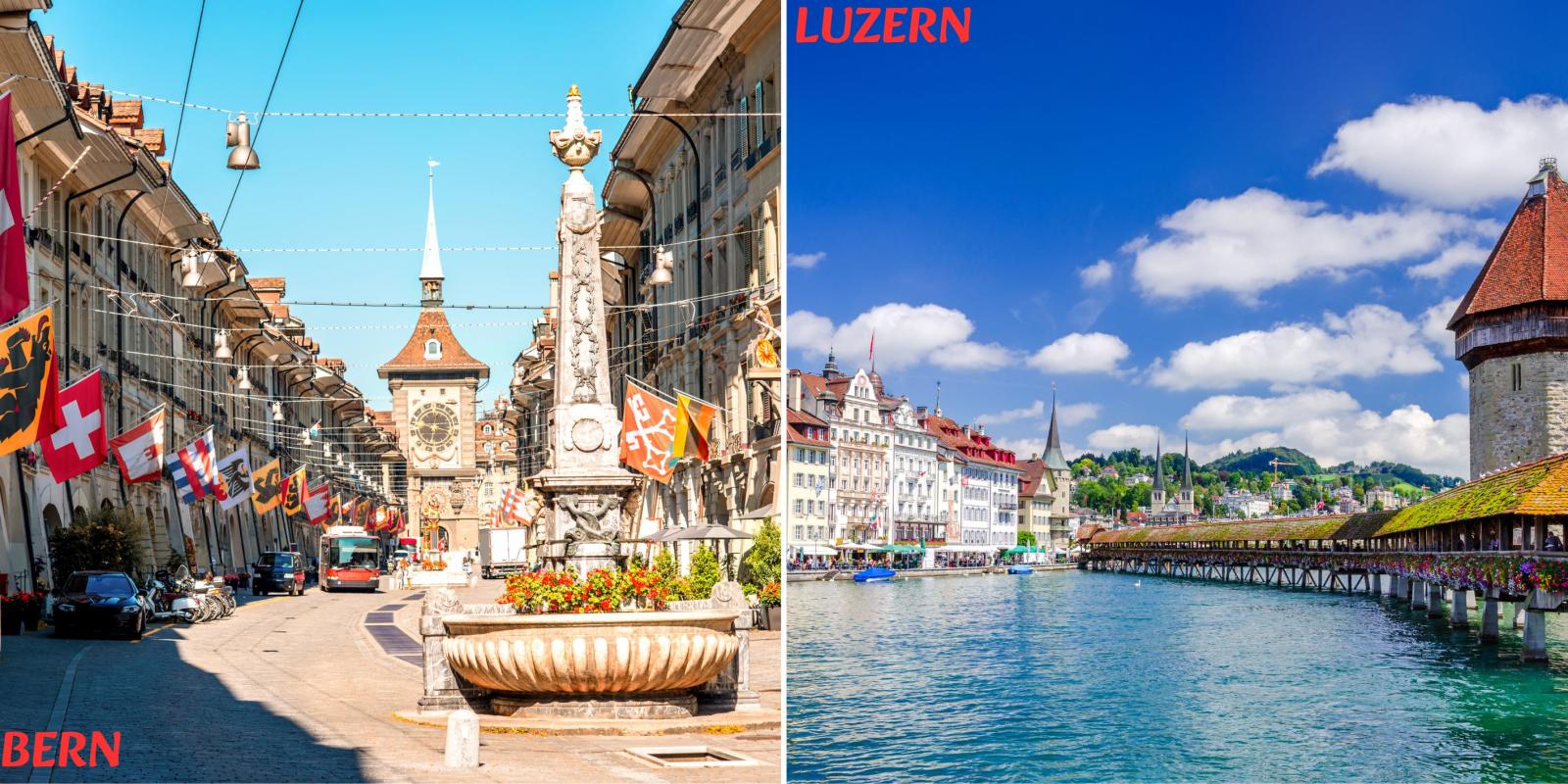 Luzern staat bekend om zijn historische bruggen, zoals de Kapellbrücke, en het mooie Vierwoudstrekenmeer.