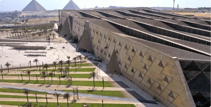 Na het ontbijtbuffet bezoeken we het Egyptisch Museum (GEM), waar we onder meer het gouden masker van Toetanchamon en de mummies van farao’s zoals Ramses II bewonderen.
