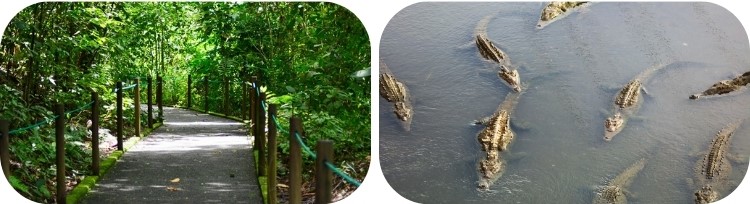 Langs de route vanaf de Tarcoles-brug worden vaak krokodillen op de rivieroevers gezien.
