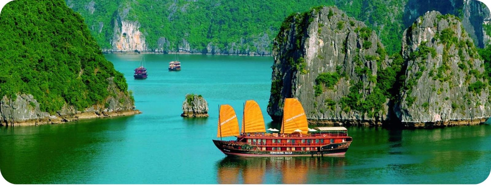 Halong Bay is een van de meest iconische en adembenemende plekken in Vietnam en staat bekend om zijn duizenden kalkstenen eilanden en dramatische rotsformaties die oprijzen uit het turquoise water.