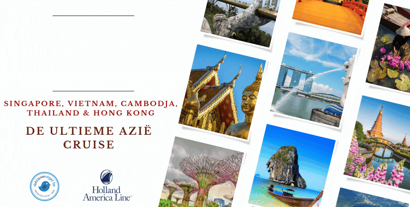 *Internationale vluchten : Brussel – Singapore / Hong Kong – Brussel *Transport van en naar de luchthaven en cruiseschip *1 overnachting in hotel JEN by Shangri La**** te Singapore *15-daagse adembenemende cruise langs de mooiste aanleghavens van Singapore, Thailand, Vietnam en Hong Kong *14 nachten aan boord van het prachtige schip HAL Westerdam *Nederlandstalige begeleider gedurende de volledige reis *Animatie, shows, fitnessruimte en entertainment aan boord *Volpension (ontbijt, lunch, diner in het buffet- én a la carte restaurant) *Have it All *Signature Beverage pakket *Surf Wifi pakket *Voor deze afreis 2 diners in een specialiteiten restaurant *Voor deze afreis 200 USD excursie tegoed per persoon *Crew appreciation (fooien inclusief) *Havengelden en Taxen *Btw en garantiefonds