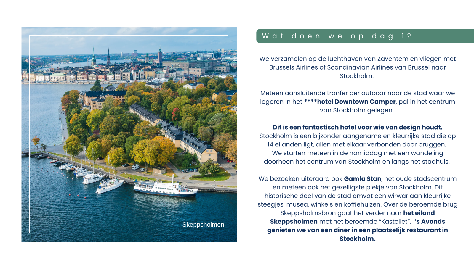 - Rechtstreekse vlucht heen met top airline (Brussels Airlines of Scandinavian Airlines) & Retourvlucht via Kopenhagen, Amsterdam of Oslo