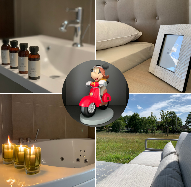 Extra in het appartement op het gelijkvloers : luxe bubbelbad ( hoekbad) & Scapa home meubilair.