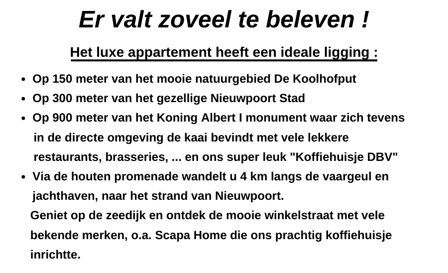 Ook het centrum van Nieuwpoort Stad ligt op wandelafstand ( 5 minuutjes tot de historische Grote Markt ! )