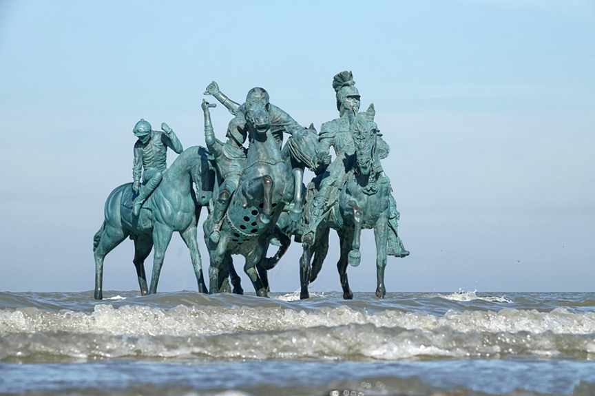Dit ruiterstandbeeld is van de hand van Nina Beier. Door het standbeeld in zee te plaatsen toont de kunstenares ons eb en vloed van macht door het paard in te zetten als verhogend effect in de beelden van verschillende mannelijke personages. Het lijkt alsof de standbeelden verdwijnen en verschijnen met het getij. Een dagelijks ritueel waarbij de zee de scherpe randen van de standbeelden langzaam opslokt tot ze uiteindelijk in de anonimiteit verdwijnen.