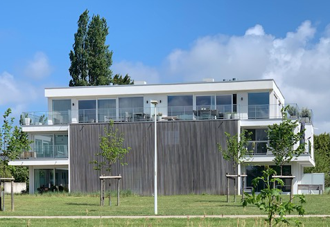 Het gloednieuwe luxe appartement Villa Ostrea op de eerste verdieping (klein zijdelings zicht op de vaart):