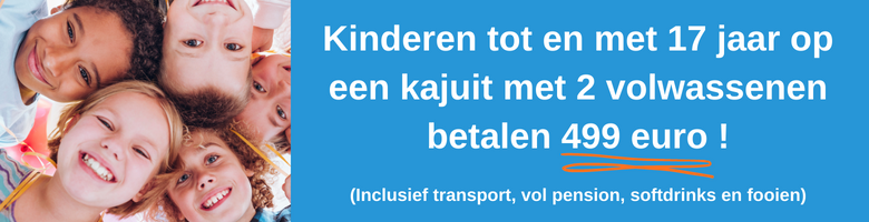 Kinderen jonger dan 18 jaar op de kajuit van twee betalende volwassenen betalen slechts 499 euro (onbeperkt softdrinks pakket inbegrepen)