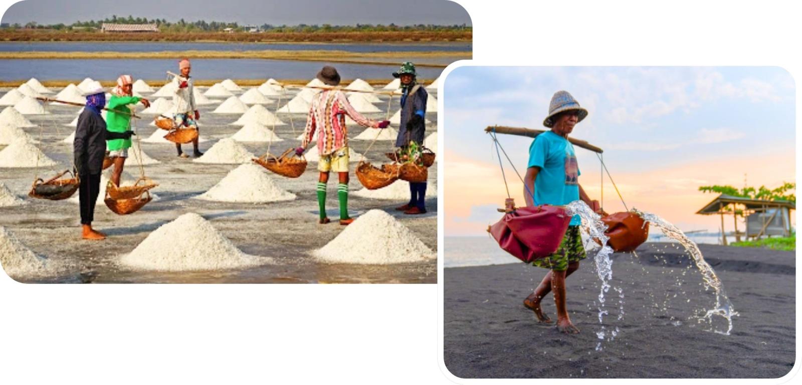 Naast het zout leven de mensen van de visserij. De kleurrijke houten vissersboten, jukungs, dobberen op het ritme van de oceaan,