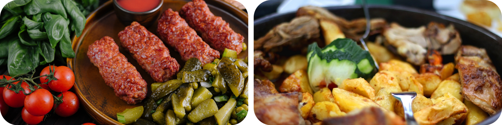 Brav u Mlijeku, Njeguski steak, Buzara, Njegusi Prosciutto, Priganice, Kotorska Torta en Montenegrijnse kazen.