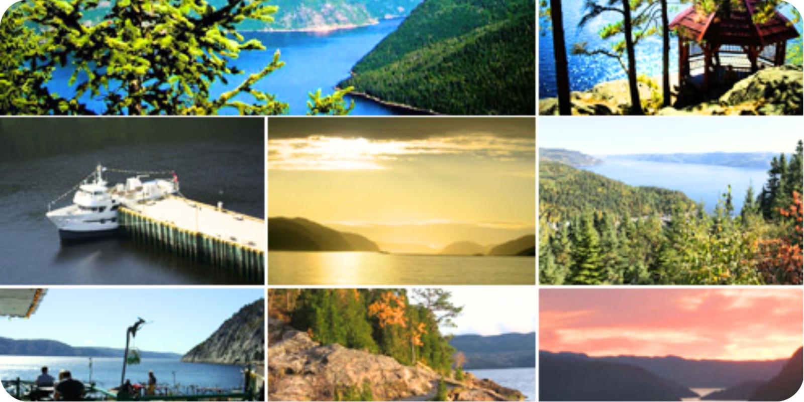 We maken een fotostop in het pittoreske dorpje Sainte-Rose-du-Nord en bewonderen de schoonheid van de Saguenay Fjord.