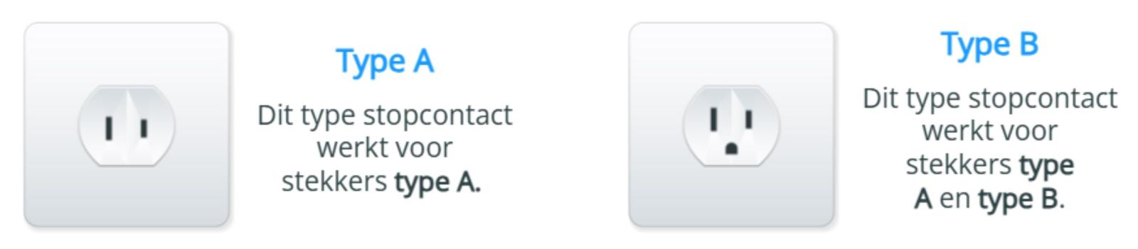 De netspanning bedraagt 110V. Stekkers A en B, moderne apparaten die op 220V werken doen dat ook op 110V.