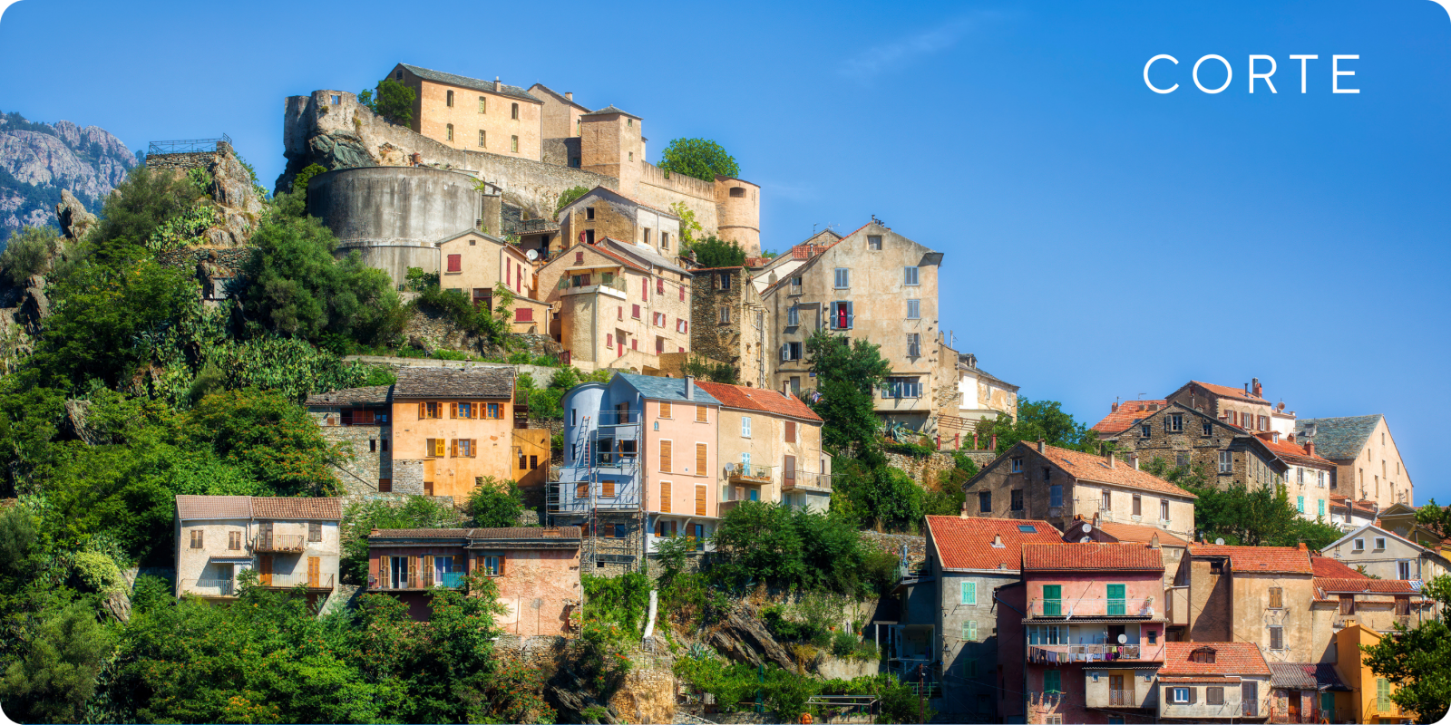en universiteitsstad van Corsica ontdekken, met zijn citadel die majestueus op een steile berg is gebouwd.