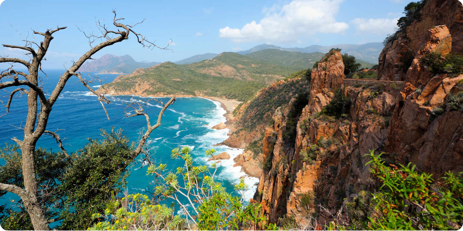 Het is een opeenvolging van met maquis bedekte bergen die zich in de zee storten.