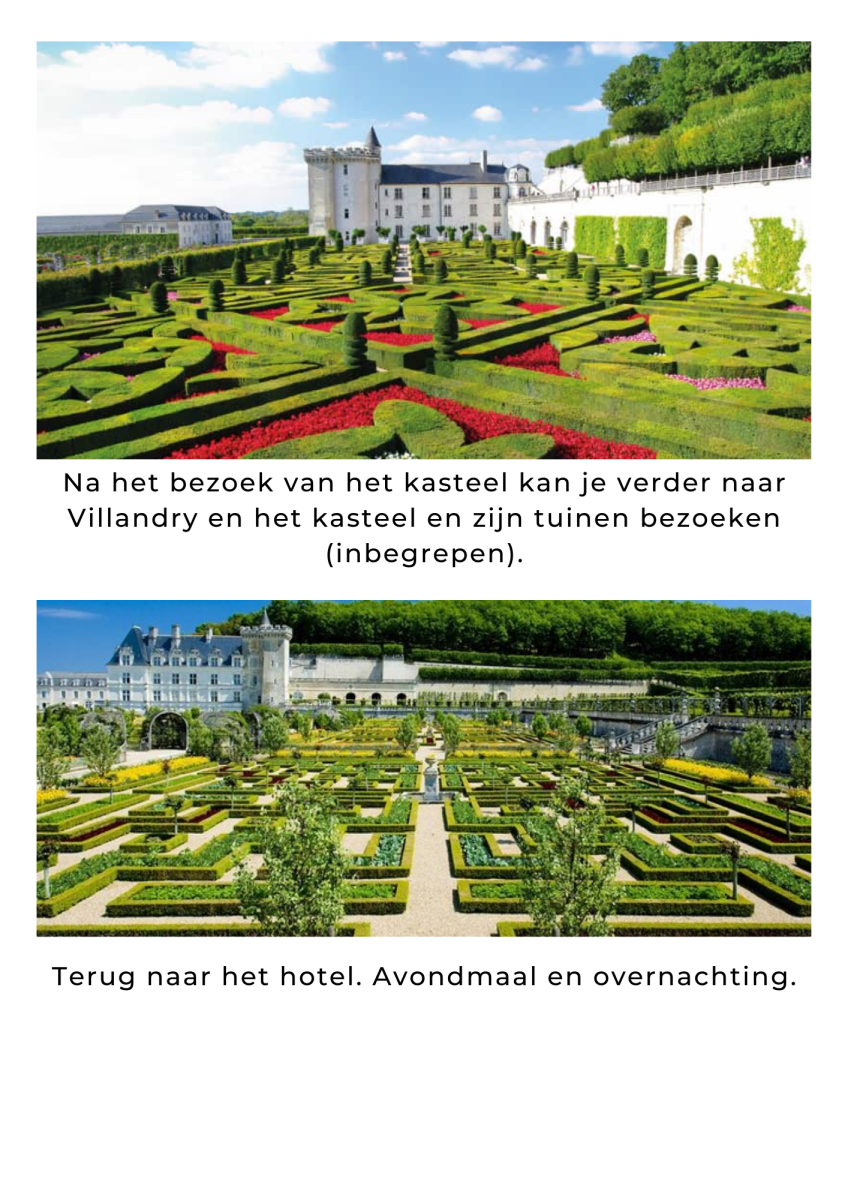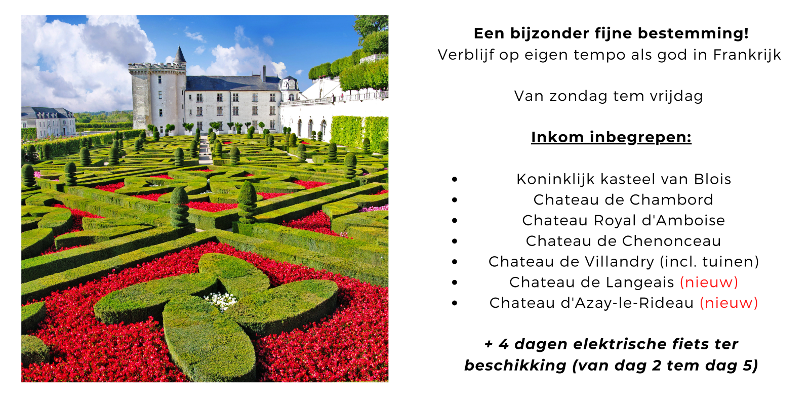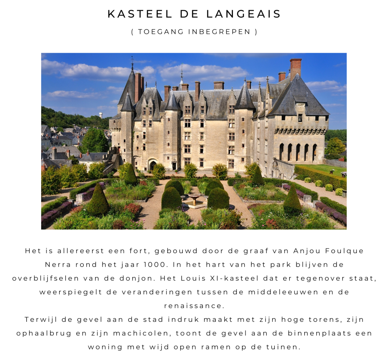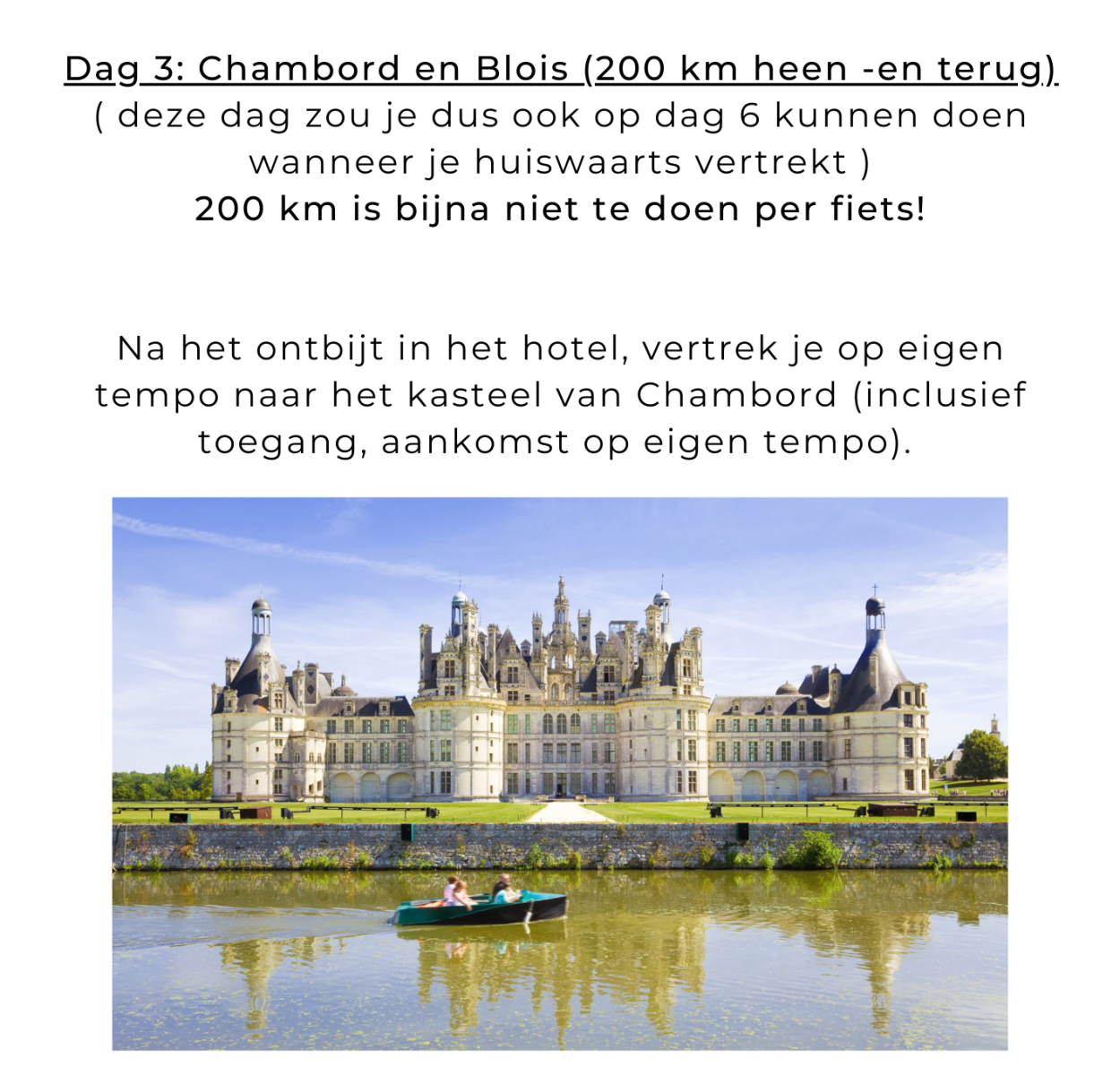 * 7 kasteelbezoeken: Blois, Chambord, Royal d'Amboise, Chenonceau, Villandry, d'Azay-le-Rideau & de Langeais