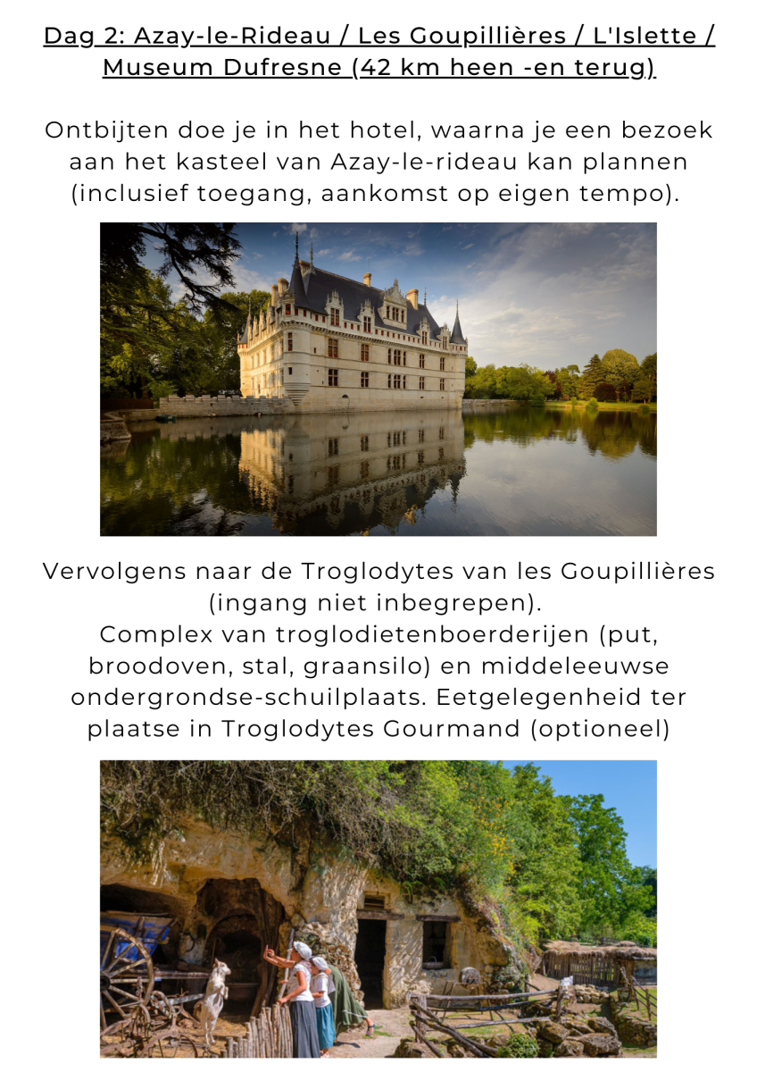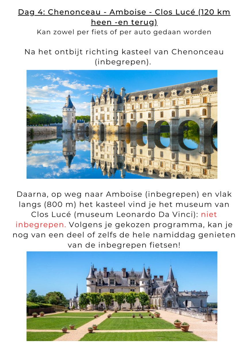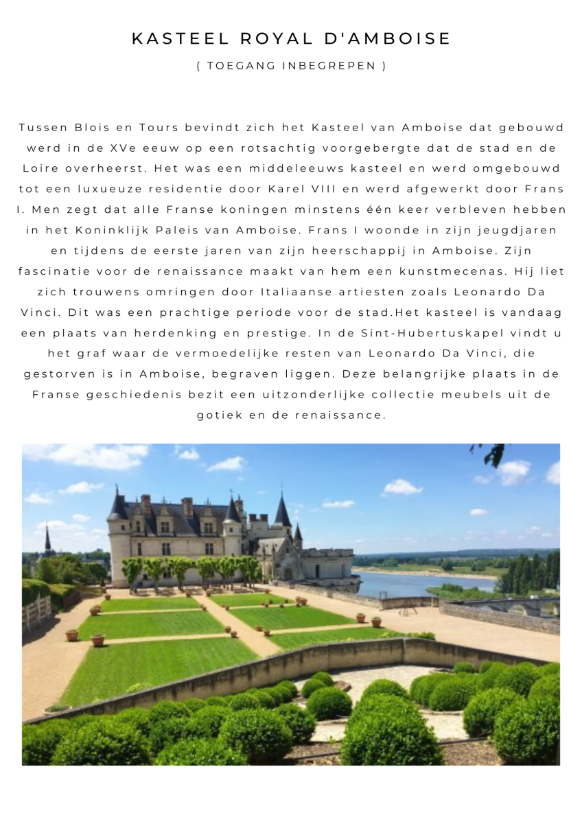 Kasteel Clos-Lucé : https://vinci-closluce.com/fr (80km heen en terug vanuit hotel)