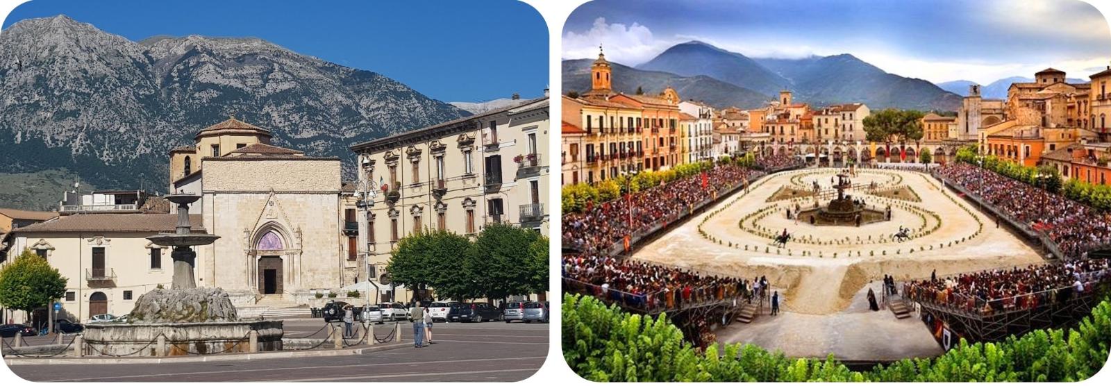We starten met een bezoek van de Corso Ovidio. De belangrijlkse straat, die het hart van het oud centrum doorsnijdt met prachtige monumenten zoals het prachtige Complesso della Santissima Annunziata.