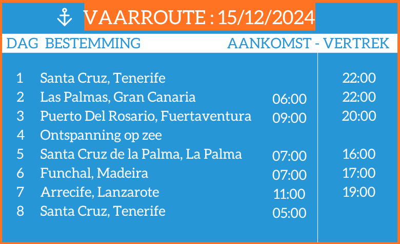 *** OPGELET: enkel voor afreizen in december 2024 en januari 2025 (zie vaarroutes hogerop) ***