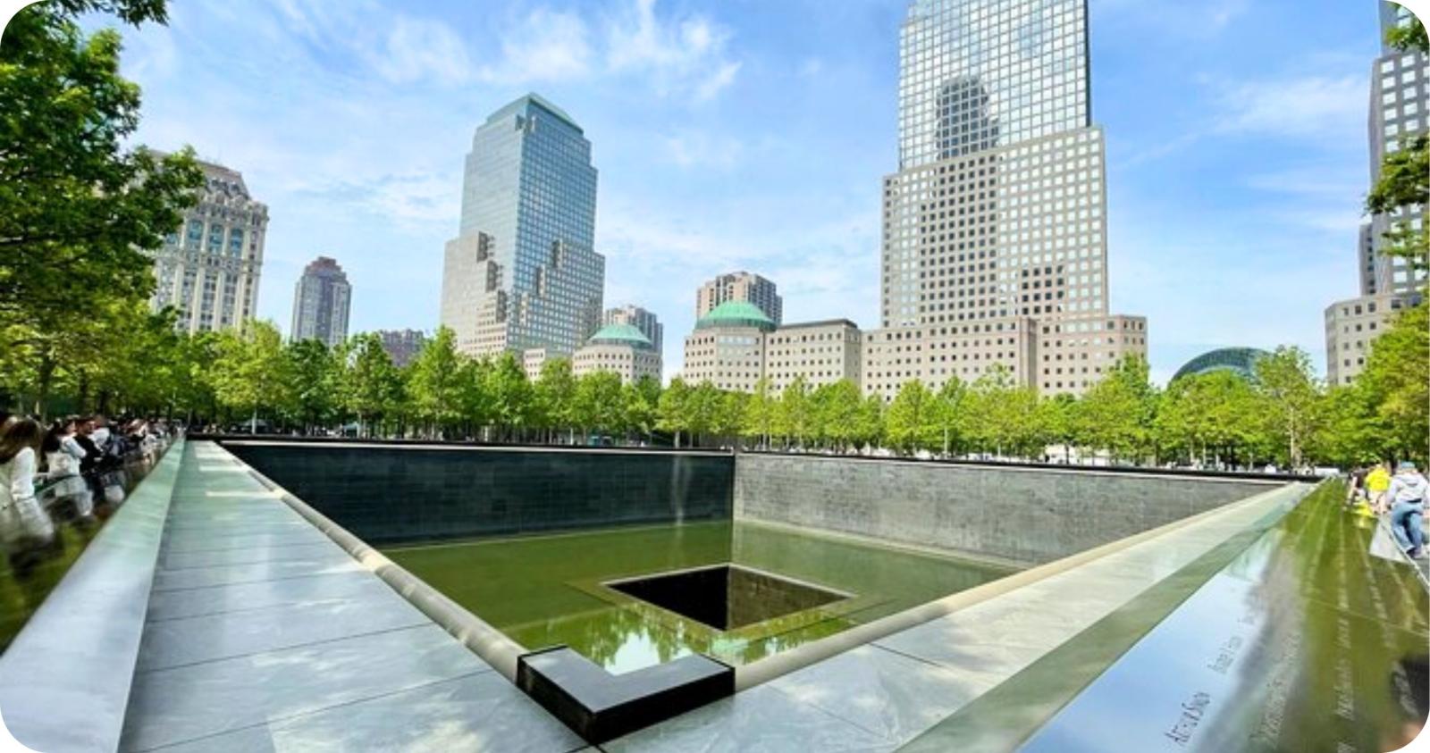 We bewonderen er de Memorial Pools en wandelen ook door de Oculus van Santiago Calatrava.