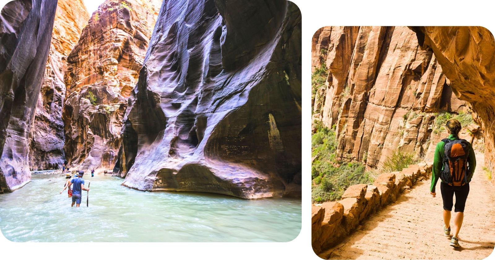 Zo kan je bijvoorbeeld een wandeling maken door de nauwe canyon van de Virgin River,