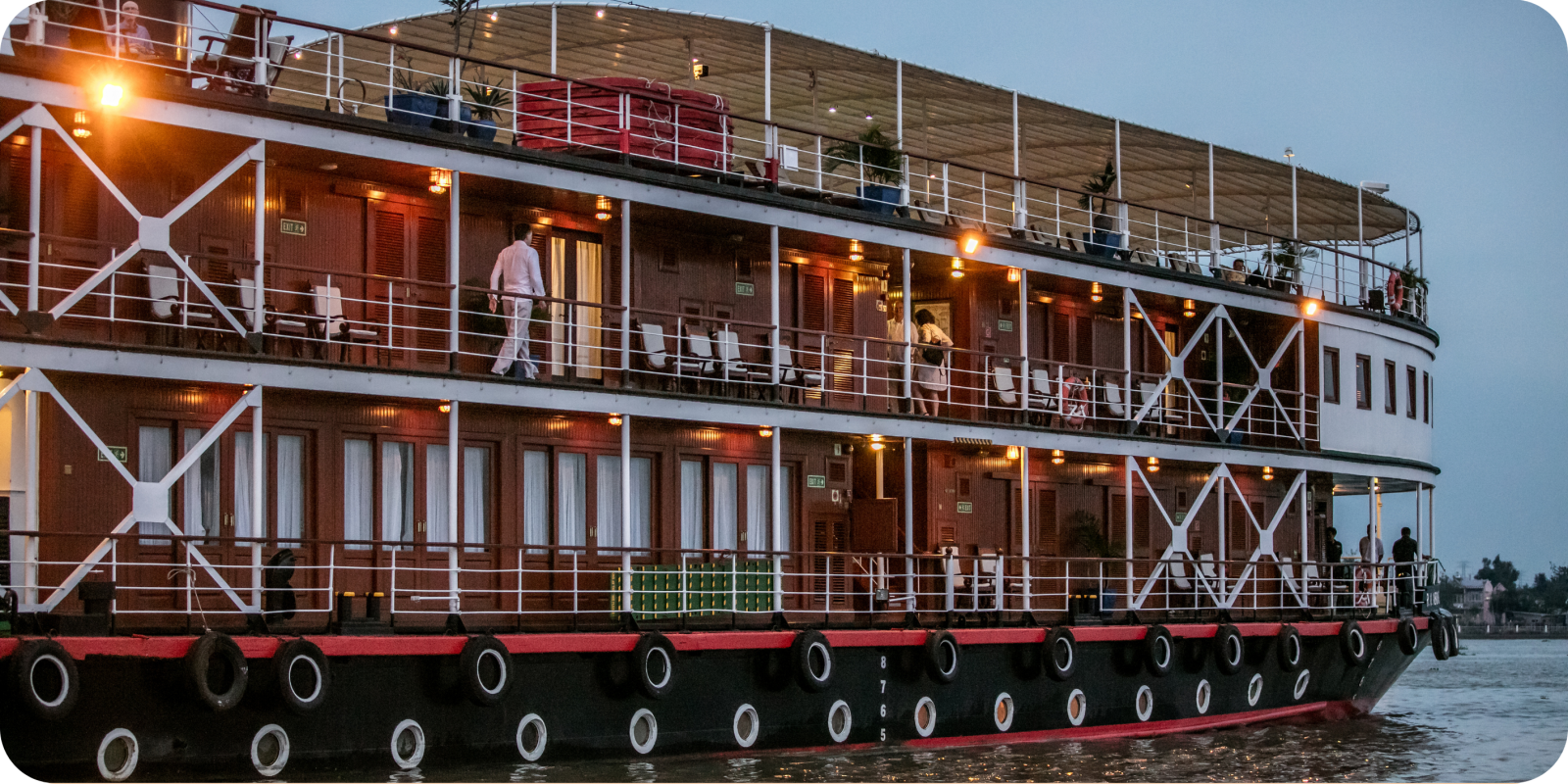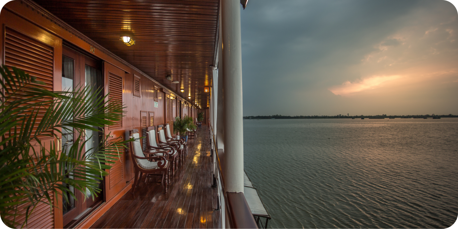 Luxeschip met veel open wanden waardoor U te allen tijde de fascinerende wereld van de rivier kan zien.